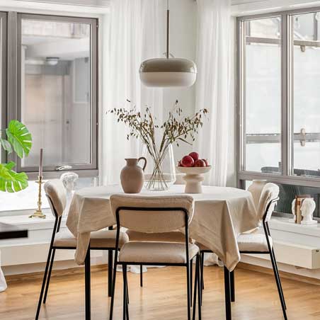 A beautifully decorated dining room creates the perfect setting for meals with family and friends.